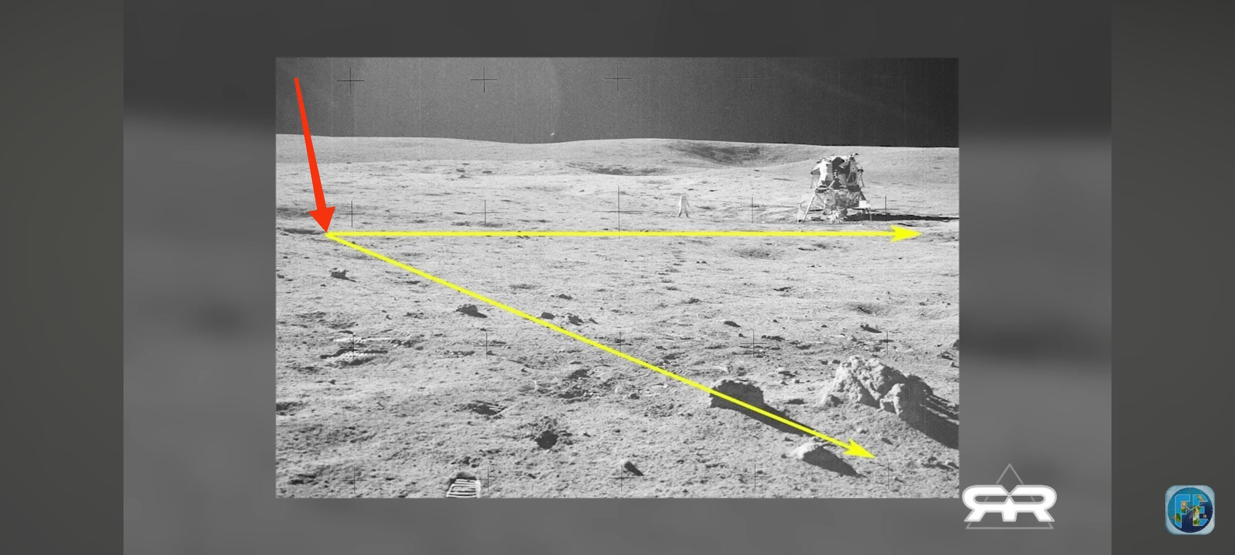 A na zdjęciu "księżycowym" (z planu filmu pt "lądowanie na księżycu") cień lądownika nie wchodzi w bliższy plan, ale idzie idealnie w bok (lub nawet "nieco w górę zdjęcia", ku górnej ramce zdjęcia). Patrz! W razie potrzeby: powiększ sobie zdjęcie.